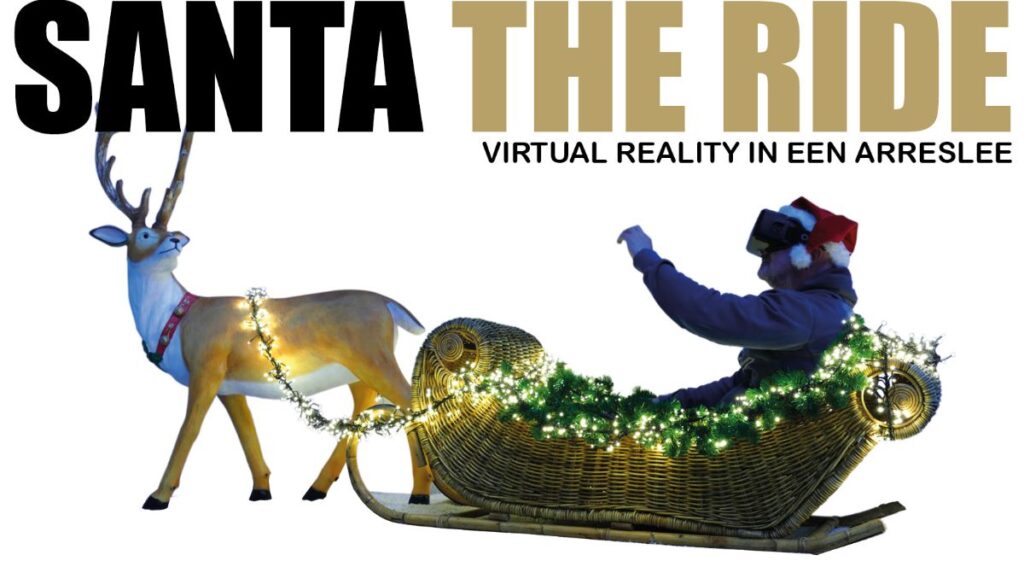 Neem dan plaats in onze Arreslee, zet onze Virtual Reality bril op en beleef deze sensationele ‘ride’ en ervaar de wereld van Santa Claus. En om dit ultieme kerstgevoel nog meer te versterken plaatsen wij naast deze originele ‘ Santa Sleigh’, een imitatie ‘Reindeer’, kerstbomen op een winterondergrond en natuurlijk sfeervolle kerstverlichting.