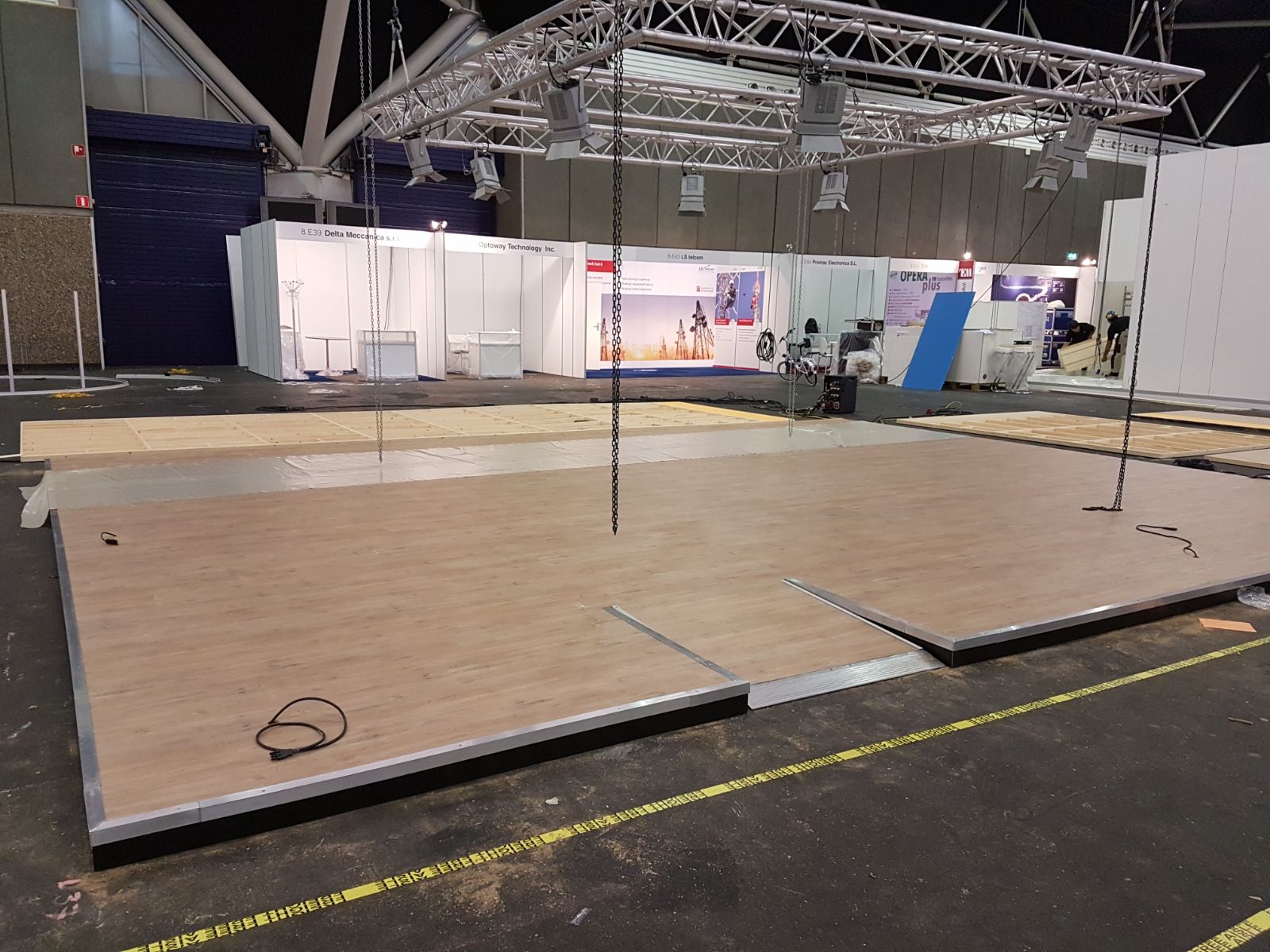 Ook voor het leggen van een verhoogde vloer, om uw stand of evenement kabel -en afvoervrij te maken, zijn wij uw partner! Wij bezorgen en leggen ze op elke gewenste locatie, onze vloeren hebben een hoogte tussen de 10 en 13 cm en worden gelegd met laminaat, vast tapijt of tapijttegels.