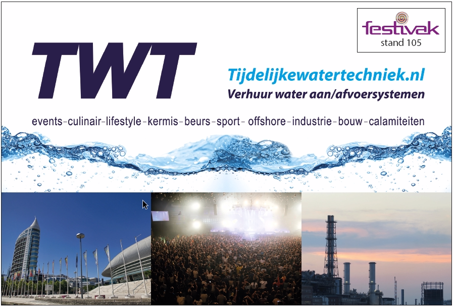 TWT Verhuur is uniek vanwege haar complete dienstverlening in tijdelijke watertechniek en sanitaire voorzieningen. TWT Verhuur verzorgt niet alleen de aanvoer van zuiver water, maar ook de afvoer van toiletwater, levering van bars en wasbakken en alle benodigde sanitaire voorzieningen zoals wasplaatsen, mobiele douches en toiletunits. Waar TWT Verhuur startte met de aanleg van tijdelijke water aan/afvoervoorzieningen om elke locatie waar men een evenement wenst te houden te voorzien van zuiver stromend water, zijn ze nu uitgegroeid naar een belangrijke partij op het gebied van een totaaloplossing voor watertechniek. Hun belangrijkste slogan is niet voor niets: “Doen wat we beloven”.