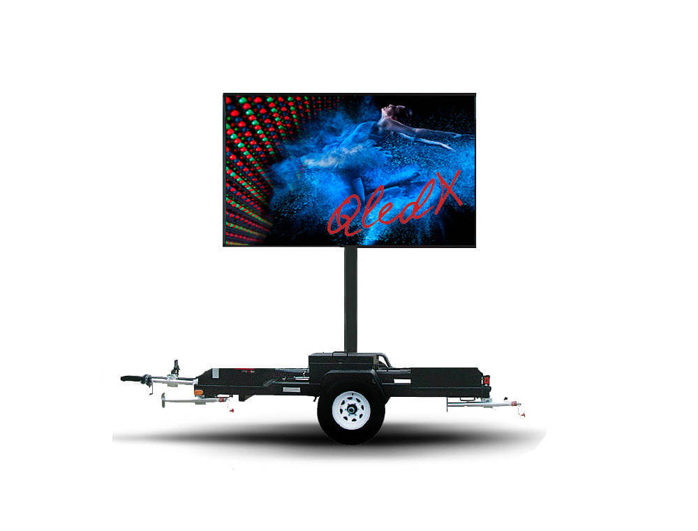 De QledX ledschermen op een aanhanger (ledtrailer) zijn kant en klaar, plug and play. Het ledscherm is in hoogte en draairichting verstelbaar. Er zijn vier ledscherm varianten beschikbaar.